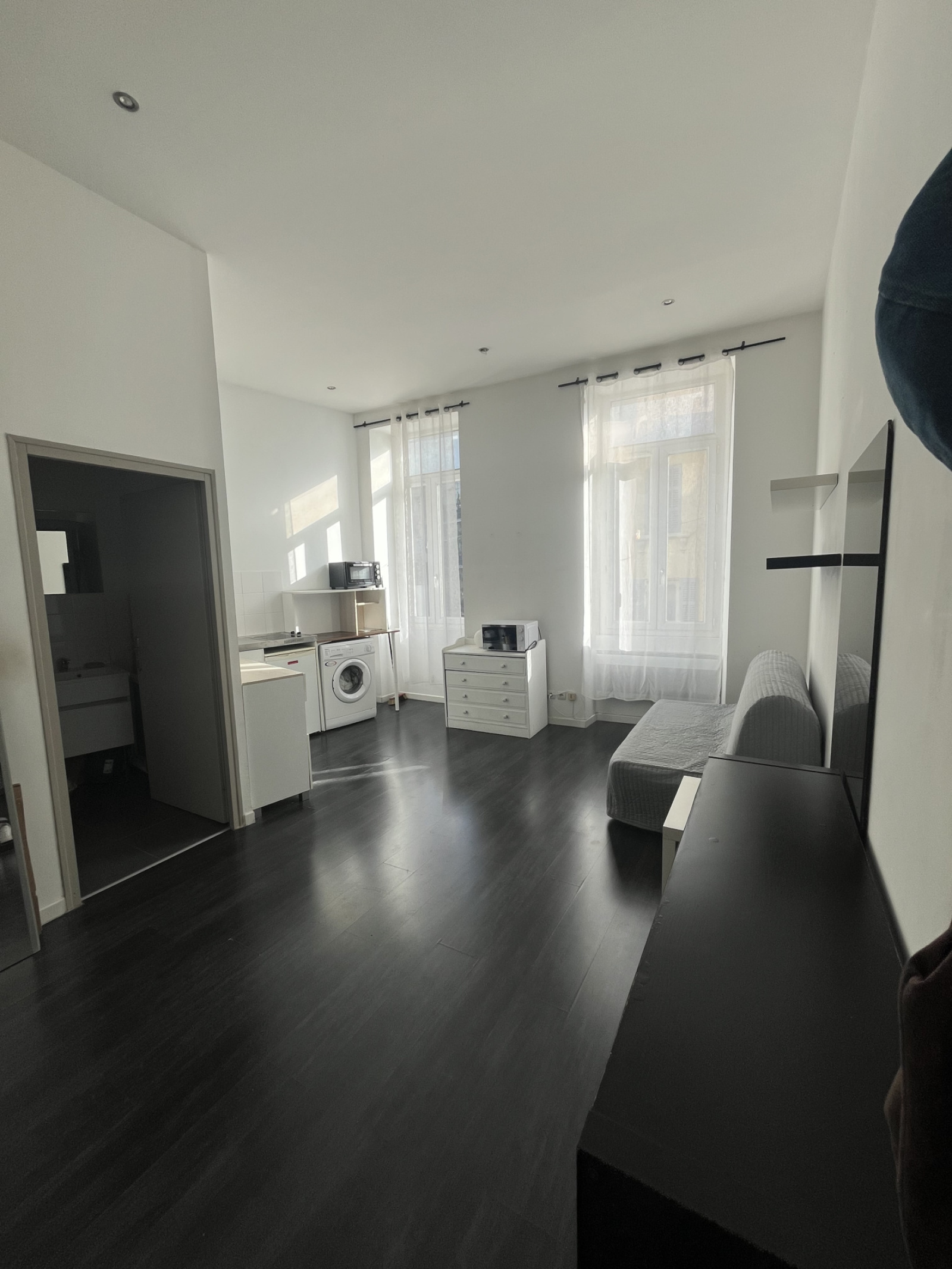 Dans un immeuble bourgeois, entre la Gare St Charles et les Réformés, joli studio au 2ème étage sans ascenseur, entièrement équipé et meublé et refait à neuf.
