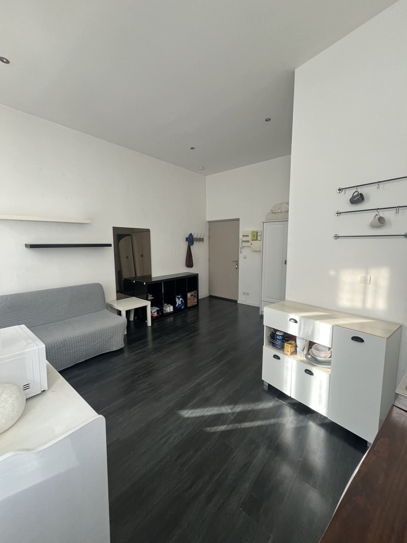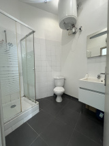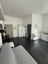 Ce studio de 25 m² avec beaux volumes, parquet au sol, double vitrage pvc blanc, kitchenette équipée, salle d'eau avec meuble vasque, wc et douche, interphone.